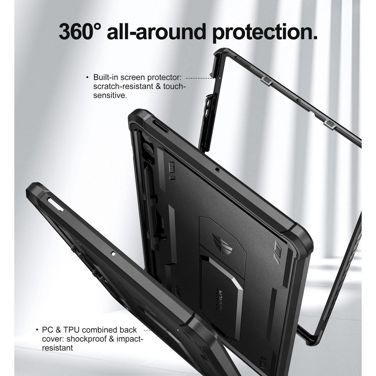 Dexnor Case for Samsung Galaxy Tab S9 FE Plus 12.4 Inch 2023, [Built in Screen Protector & Kickstand] with Pen Holder Heavy Duty Shockproof,Black