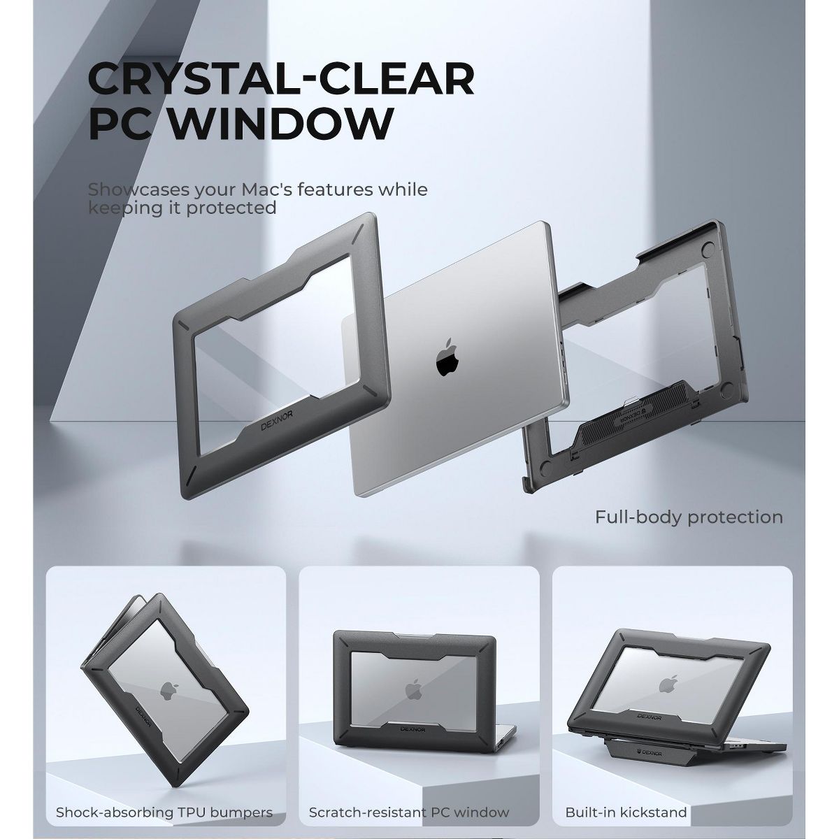 Dexnor for MacBook Pro 16 Inch Case (2024/2023/2021) with Kickstand, M4 / M3 / M2 / M1 Pro/Max, Heavy Duty Full Body Protective Cover, Black