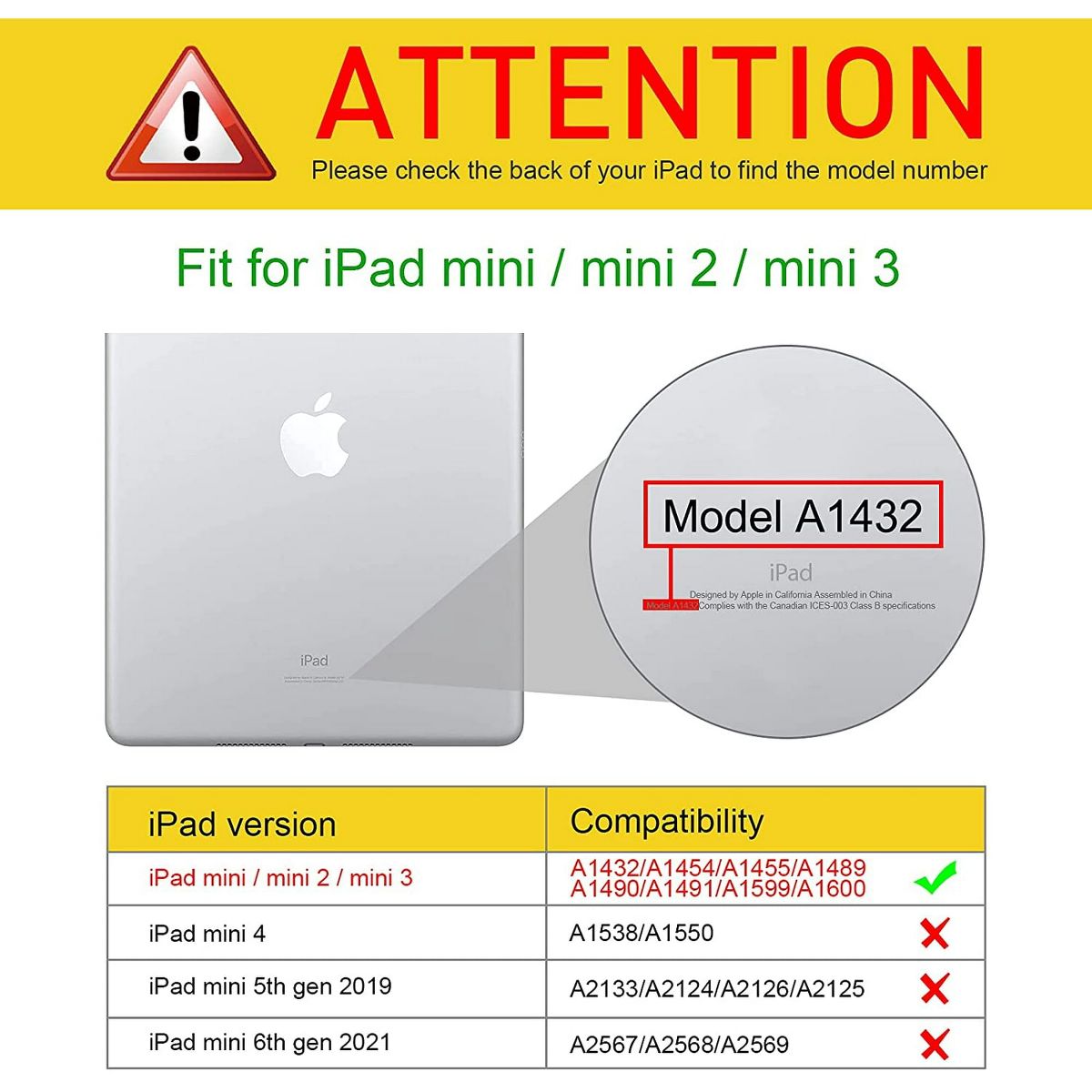 Compatibility: Designed for Apple iPad Mini 1/2/3 7.9" ONLY.