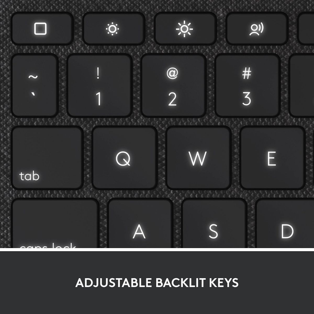 A flexible design with detachable Smart Connector keyboard supports four distinct use modes for extra versatility no matter where you are - a café table, desk, or even your lap. The light and durable case keeps iPad protected from bumps, scratches, and drops up to 4 feet. There's even a convenient spot to stow Apple Pencil or Logitech Crayon. Plus, enjoy a full row of iPadOS shortcut keys.