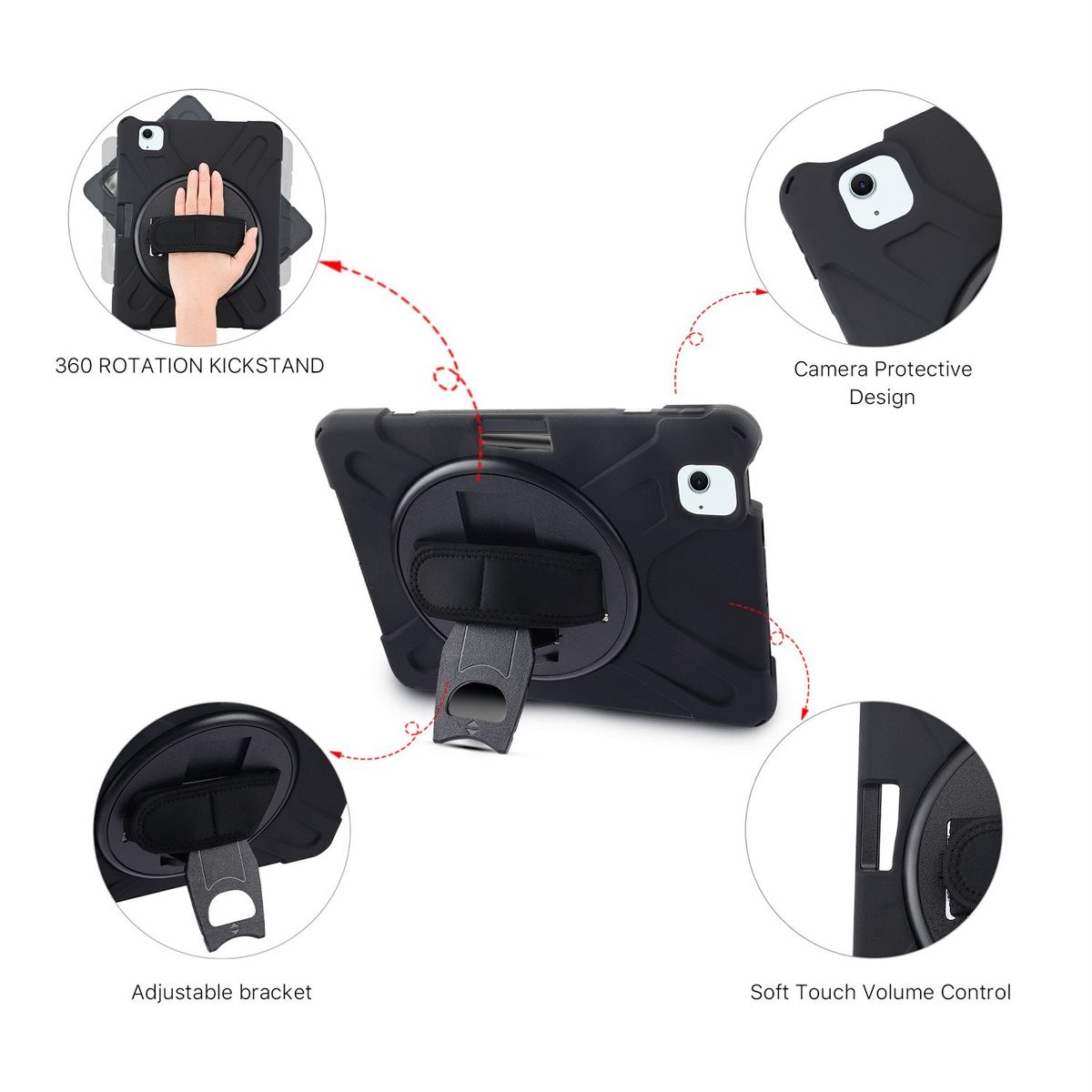 MyBat iPad Case for Apple iPad Air 11 (2024) (2025) / Black, with 360° Rotating Kickstand, Hand Strap & Pen Holder Black