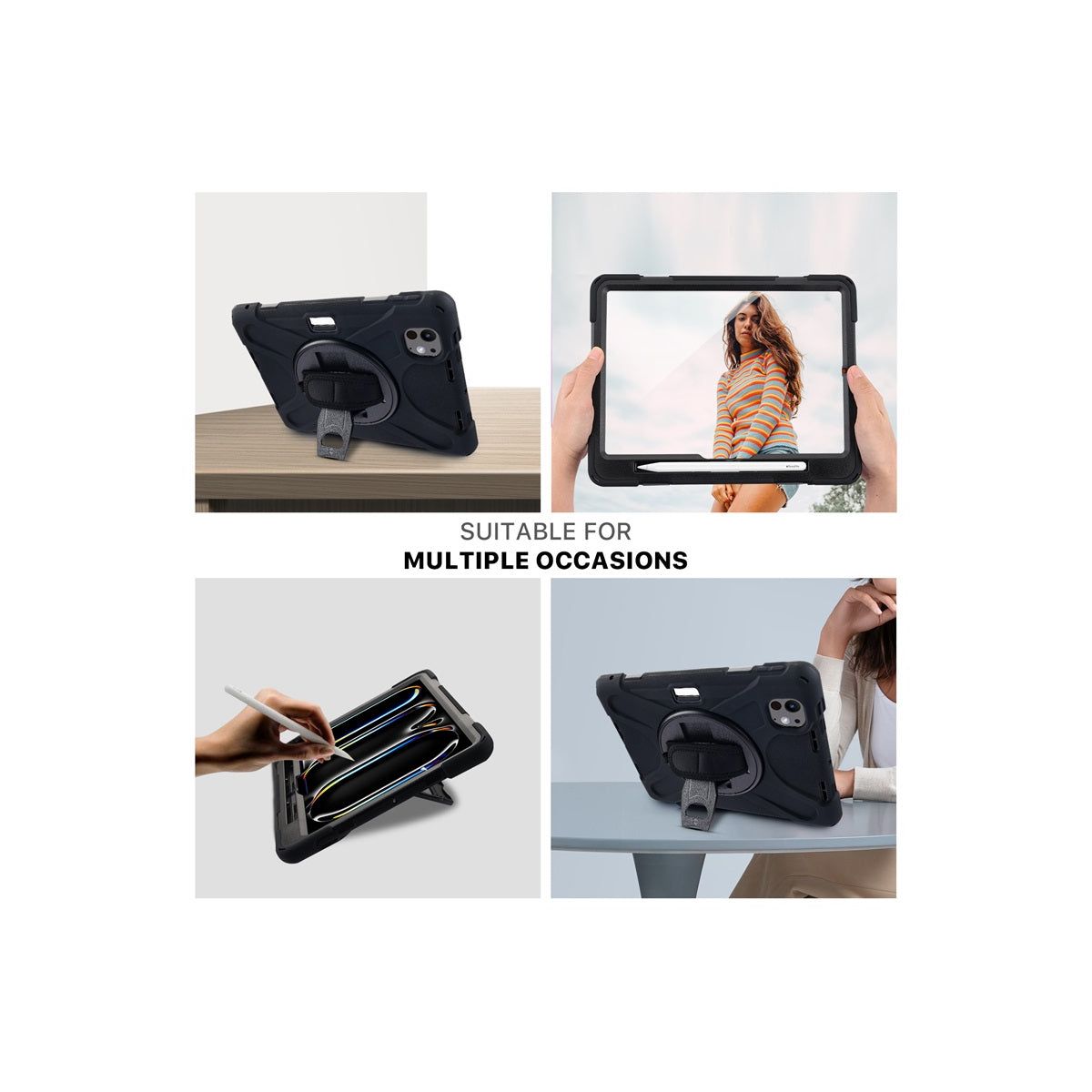 From the rotatable kickstand to the adjustable hand strap and built-in pen holder, every detail is made for hands-free ease and on-the-go flexibility. Whether you're streaming, reading, teaching, or working, this case keeps your Apple iPad Pro 13 safe and ready for action—wherever life takes you.