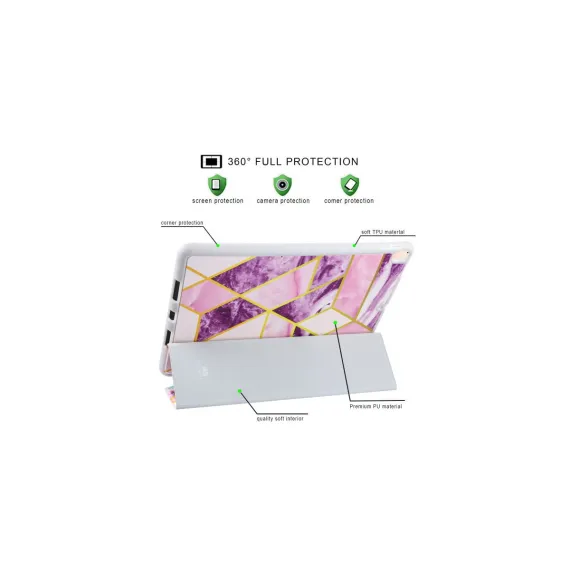 Turn heads while keeping your iPad safe with the MyBat Slim Fit MyJacket Case in a stunning purple-pink marbled finish. Designed to fit both the iPad Pro 10.5" and iPad Air 10.5" (2019), this stylish smart cover features a foldable trifold stand, magnetic sleep/wake function, and slim protection ideal for daily use.