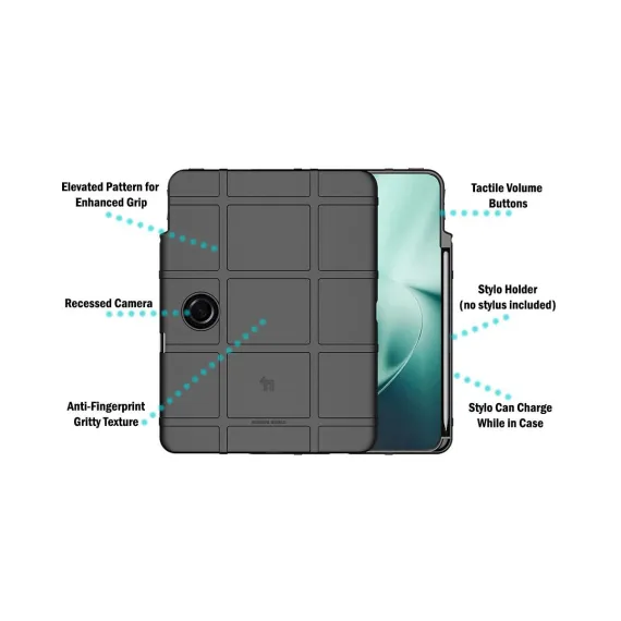 The Tactical Rugged Shield is a tough flexible cover that is ready to serve and protect your OnePlus Pad Tablet (2023). This case provides impact protection, shock absorption and enhanced textured grip. Furthermore, the matte texture will resist fingerprints so your tablet/case will look professional all day long!