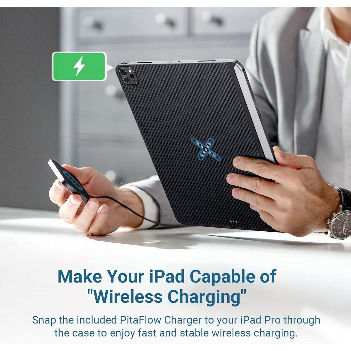 [Enjoy Wireless-like Charging Like Never] Snap the included PitaFlow Charger to your iPad Pro 12.9 through the case to enjoy fast and stable wireless charging - no more frequently plugging and unplugging the cable and definitely not letting the cable get