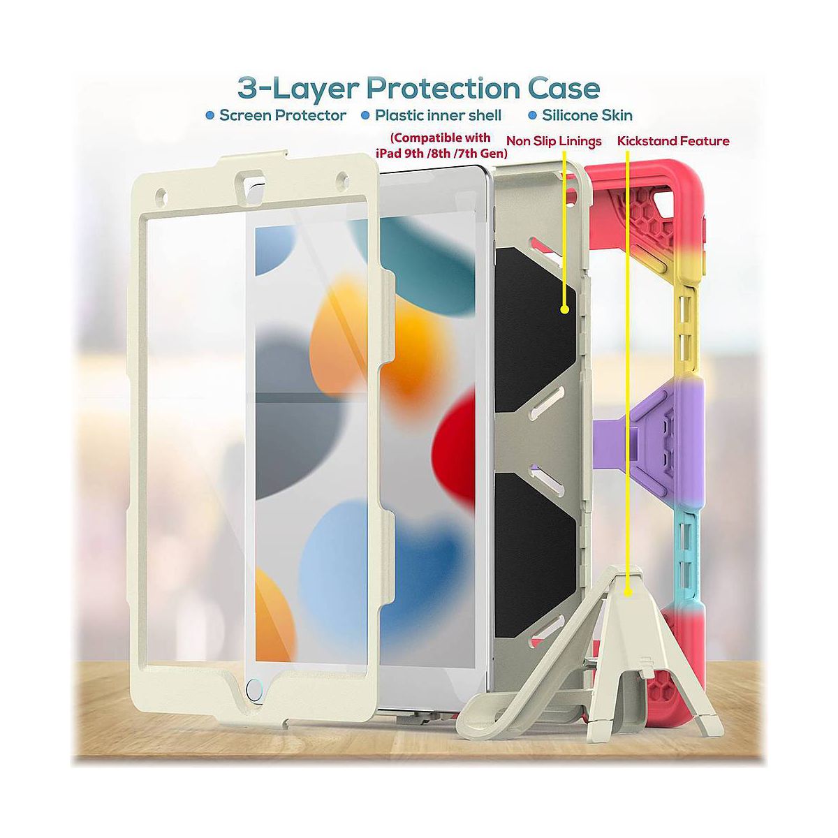 Introducing the Wander™ Series Kickstand Case for Apple iPad 10.2"  - the ultimate protector designed for children. Its sturdy, child-friendly construction protects the device against the bumps and drops of daily adventures.