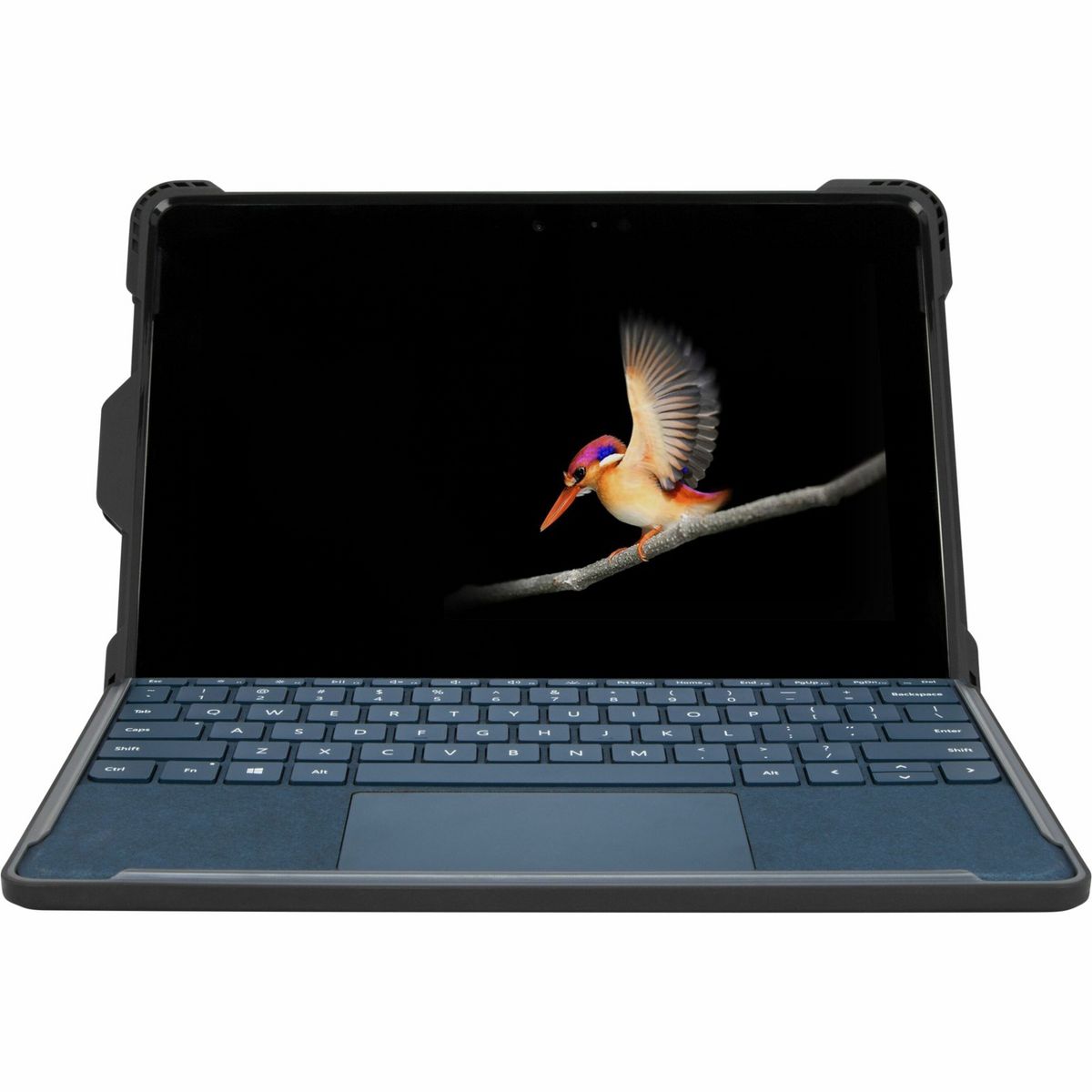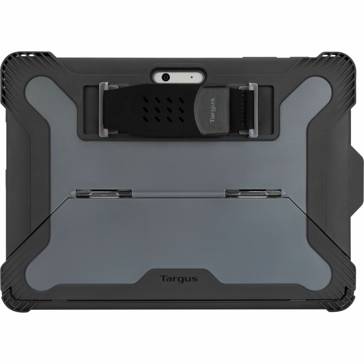 Whether in the office, at the job site or somewhere in between, the Targus SafePort® Rugged MAX Case keeps your Microsoft Surface™ Go 3, Microsoft Surface™ Go 2 and Surface™ Go protected. From its hardened polycarbonate shell and shock-absorbing materials protect the Surface™ Go and the Type Cover (not included). The case meets the rigorous MIL-STD-810G standards that protect from sudden drops and accidental slips. And since it also encloses — and locks in — the Type Cover, it helps to prevent accidental detachment while you’re on the go.We’ve designed the case so that it’s as light and thin as possible while still maintaining its rugged protection. An integrated stand for landscape viewing and typing positions adds versatility and hassle-free portability. Connect the soft neoprene hand strap and your tablet becomes more accessible and secure than before.