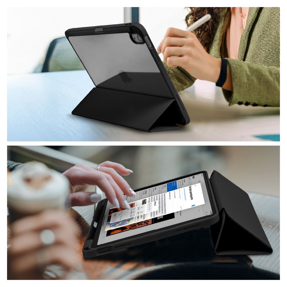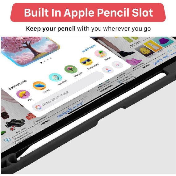 This trifold case fully envelops your iPad, offering all around protection when on the go while showing your iPad’s original aesthetic. The case also includes a slot for your Apple Pencil.