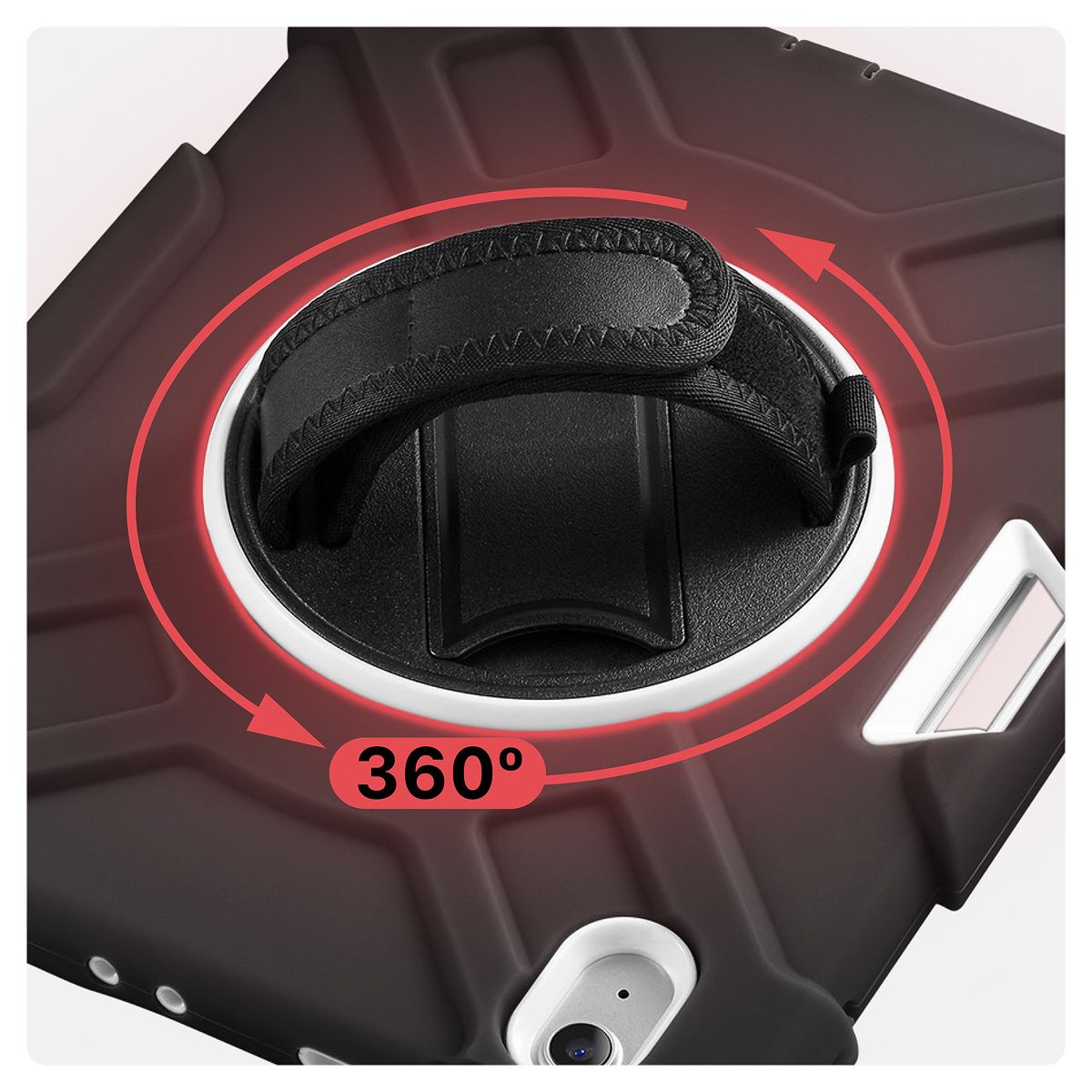 Vena For Apple iPad A16 Case with Pencil Holder, iPad 10th Generation Case 360° Rotating Hand Strap Stand, iPad 11th Generation Case Cover, Black