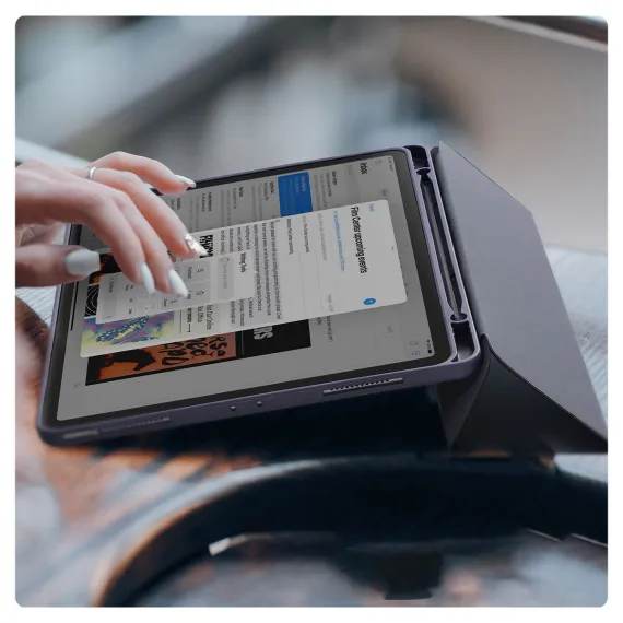 This trifold case fully envelops your iPad, offering all around protection when on the go and includes a slot for your Apple Pencil.