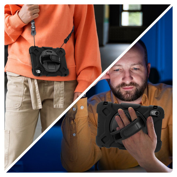 Vena’s rugged protective iPad case adds convenience and versatility. You can use the integrated 360° kickstand to comfortably watch videos, use the hand strap to support the iPad, or secure it with the shoulder strap while on the go. It also includes a slot for your Apple Pencil / stylus.