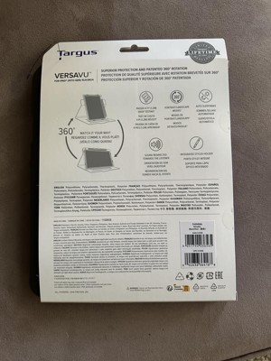 The VersaVu® Case for iPad® 2022 combines leading protection, efficient functionality, and versatile viewing, so you can carry your iPad® with confidence. With a custom-molded tray and reinforced corners, your device is protected from accidental drops and bumps, while a magnetic closure keeps it secure in the case. Like other Targus cases, the VersaVu Case offers military-grade protection for drops up to 4 feet (1.2 meters).*Its patented 360° rotation creates virtually any positioning option and transitions smoothly between portrait and landscape to customize your view. Deep grooves anchor the edge to ensure stability, and precision cutouts give you easy access to all your buttons, ports, and camera lenses. Enjoy added ease and convenience with the integrated holder for your Apple Pencil®, keeping it ready to go or your stylus close at hand (Pencil sold separately by Apple®). And thanks to its structural design, this case also has audio-boosting scoops, so you’ll have premium sound whether you’re taking a call, in a meeting, or streaming your favorite program.*As tested by an independent third party applying MIL-STD-810G, Method 516.6, Procedure IV.