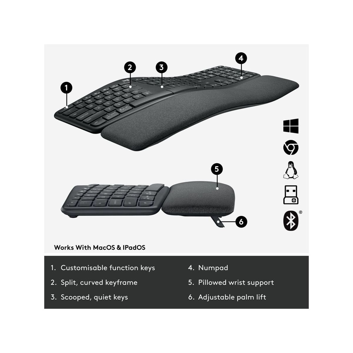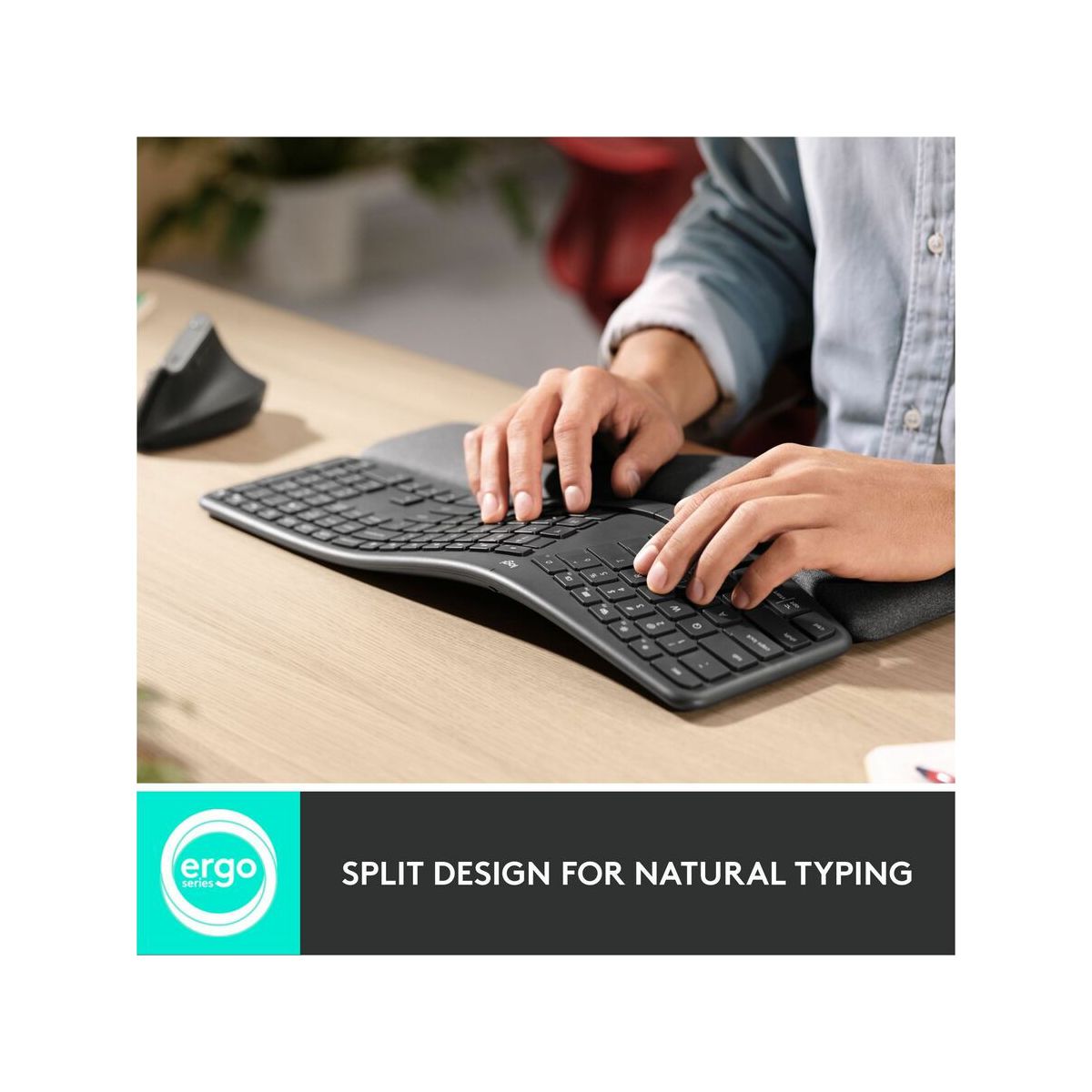 Logitech Ergo K860 Split Wireless Keyboard for Business - Ergonomic Design, Secured Logi Bolt Technology, Graphite - Wireless Connectivity - Bluetooth
