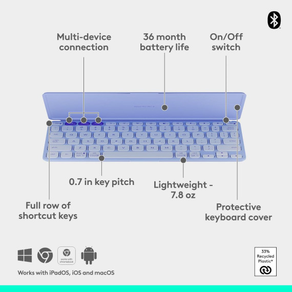 Logitech KEYS-to-GO 2 Portable Bluetooth Tablet Keyboard, Built-in Cover, LILAC