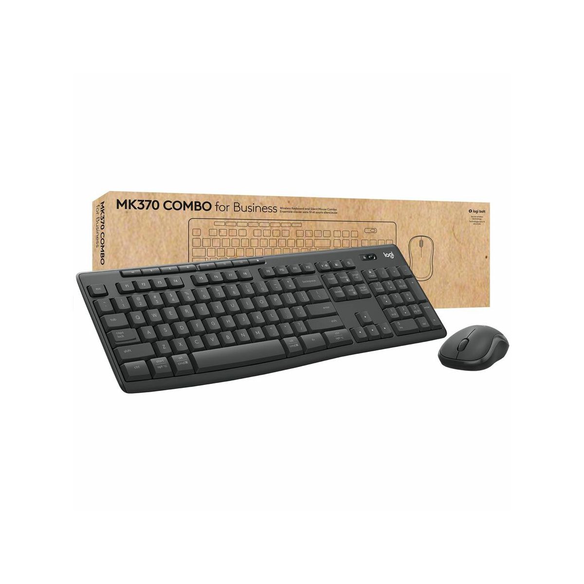 MK370 Combo for Business is Logitech's top-selling combo upgraded for the enterprise. This wireless productivity duo comes out of the box ready to perform. The combo has a spill-resistant full-sized keyboard, silent-touch mouse, eight pre-programmed shortcut keys, and Logi Bolt for secure and robust wireless connectivity. A pre-paired Logi Bolt USB receiver connects both keyboard and mouse for a no-fuss set up.