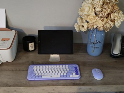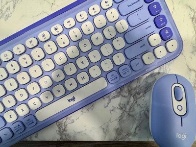 Logitech - POP ICON COMBO Compact TKL Bluetooth Keyboard and Mouse Bundle with Programmable Quiet Keys and Buttons - Lilac & Off-White
