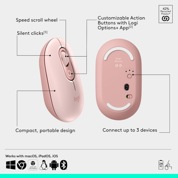 Add an extra pop to your desk with the POP Icon Combo, a contoured design with customizable Action Keys and Buttons. The low-profile keys give you a comfy typing experience. POP Mouse boosts productivity by 30%, compared to a trackpad. The Smartwheel speed scroll takes you where you need to go, fast.