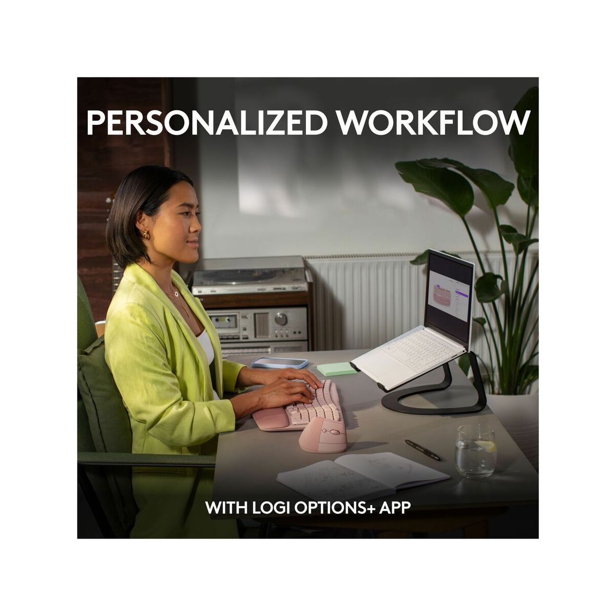 For workdays that go easy on you, Feel the Wave. Wave Keys wireless ergonomic keyboard is shaped to feel instantly familiar and keep you typing all day in a natural position.A cushioned palm rest with memory foam gives your wrists more support throughout the day.Personalize Wave Keys with shortcuts to save time and keep your work flowing using Logi Options+ App.Connect using Bluetooth or the included Logi Bolt receiver and Easy-Switch between your computer, tablet or phone in a tap. Plus, enjoy up to 3 years' battery using the batteries in the box.Match your Wave Keys with Lift Vertical Ergonomic Mouse - a great fit for small to medium hands.