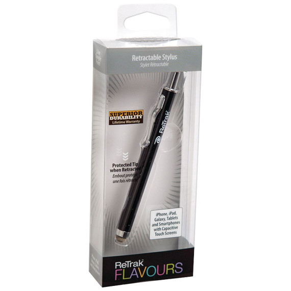 The black ReTrak Retractable Stylus gives you a more natural way to take notes, draw and navigate your screen with greater control and accuracy. Protect your device’s display from fingerprints, smudges and scratches with the conductive fabric cloth for capacitive touch screens. The stylus fits comfortably in your hand and has a built-in clip so it attaches securely to your pocket or tablet case. When your job is done, push it into its housing to prevent it from breaking._