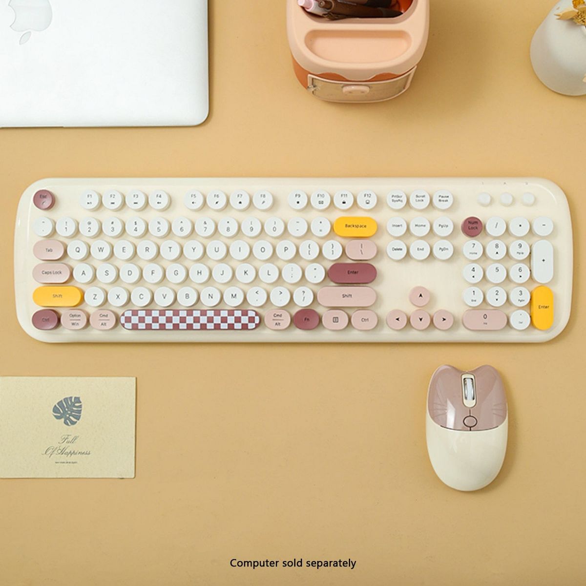 Enjoy everyday comfort and efficiency with this Wireless Keyboard and Mouse Combo, designed to brighten your workspace with a colorful 104-key layout. The rounded keycaps provide a smooth, comfortable typing feel, while the 2.4G plug-and-play connection ensures quick setup across laptops, tablets, and PCs. A USB receiver and Type-C adapter support easy multi-device use, and the foldable stand helps reduce wrist strain during longer sessions. With silent-click operation, 13 multimedia shortcuts, a 3-level adjustable DPI mouse, and automatic power-saving mode, this combo delivers reliable performance with a modern, stylish touch.
