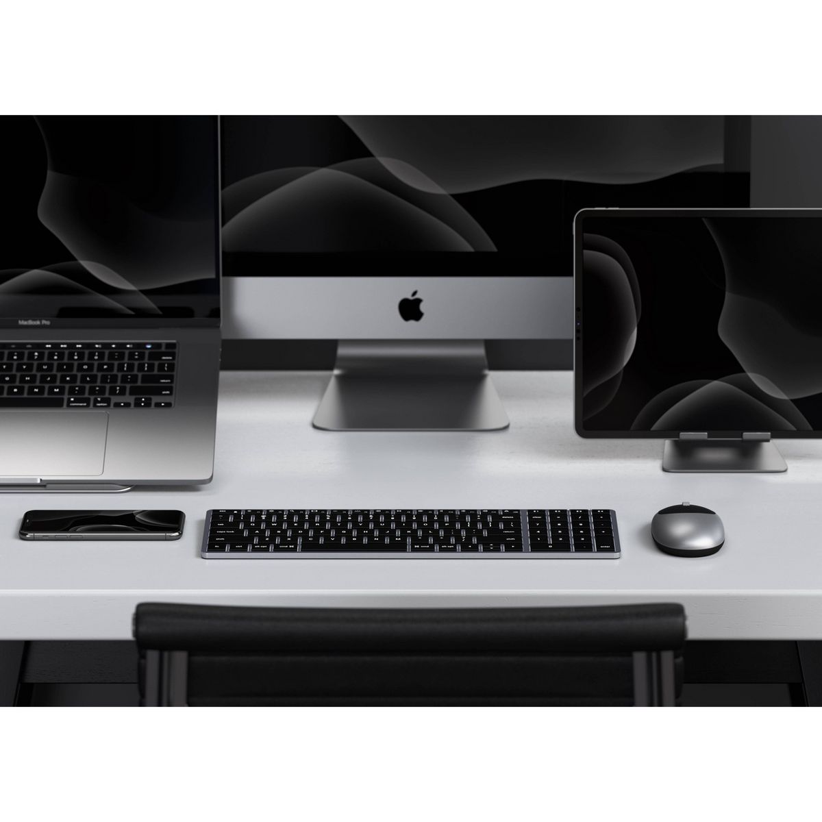 Complete your modern home or office workspace with the Satechi Slim X2 Bluetooth Backlit Keyboard. Designed for Mac & iOS devices, the X2 Keyboard features a QWERTY layout with numeric keypad, multi-device Bluetooth, and shortcut keys optimized for Apple devices – with a modern, ultra-slim design. Equipped with adjustable backlit keys and a rechargeable USB-C port, the keyboard allows you to work with ease wherever you are.