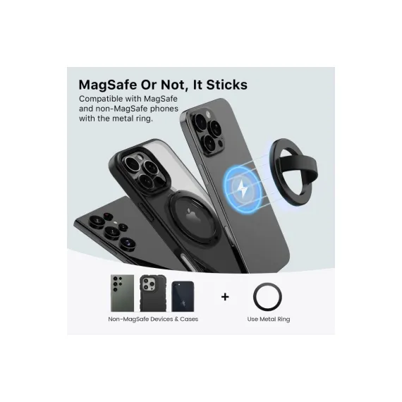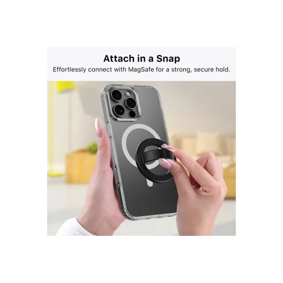 Get a grip on every moment. The MyBat SafeGrip MagSafe Phone Mount offers a secure, hands-free solution for your phone, whether you're streaming, browsing, or taking calls. With built-in MagSafe magnets, this phone holder ensures a strong, reliable grip on MagSafe-compatible cases, and it includes a metal plate for universal compatibility with non-MagSafe cases. The 360-degree rotation feature provides effortless positioning for any angle, making it an ideal choice for on-the-go use, whether in the car, at work, or at home. Designed with an ergonomic grip, this versatile phone mount provides comfortable handling while doubling as a convenient stand.