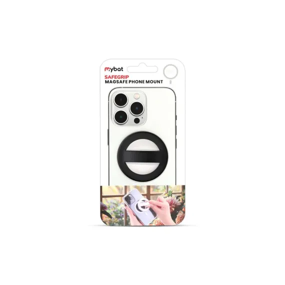 Get a grip on every moment. The MyBat SafeGrip MagSafe Phone Mount offers a secure, hands-free solution for your phone, whether you're streaming, browsing, or taking calls. With built-in MagSafe magnets, this phone holder ensures a strong, reliable grip on MagSafe-compatible cases, and it includes a metal plate for universal compatibility with non-MagSafe cases. The 360-degree rotation feature provides effortless positioning for any angle, making it an ideal choice for on-the-go use, whether in the car, at work, or at home. Designed with an ergonomic grip, this versatile phone mount provides comfortable handling while doubling as a convenient stand.