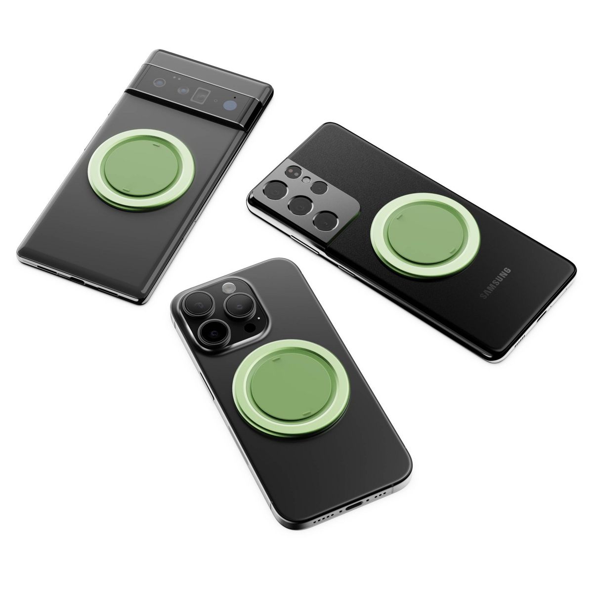 Grip. Stand. Charge. Stick. Works on all phones.