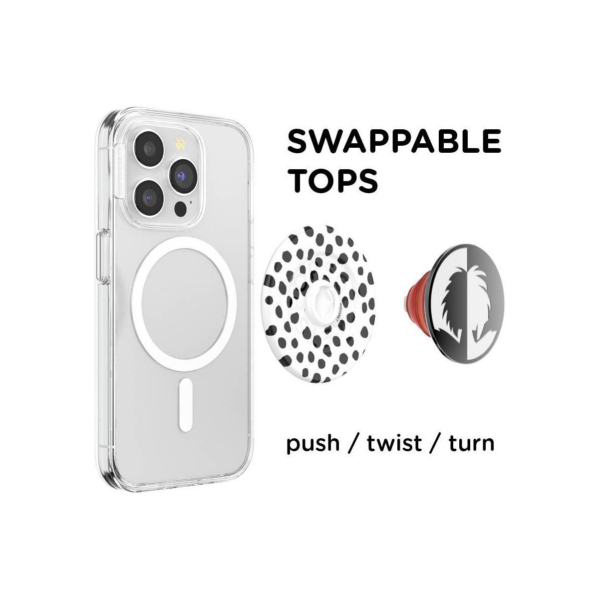 Our newly redesigned MagSafe PopGrip is a game changer, with the same reliable grip functionality. This product can be used with any MagSafe case made for iPhone 12's and newer models (including Pro, Plus and Pro Max). And now, each PopSocket MagSafe Grip includes an adapter ring to give any phone without MagSafe capabilities (i.e. Android/Pixel/Samsung/legacy iPhone case (or any non-MagSafe case) the ability to use magnetic phone accessories. Apply the adapter ring the outside/back of your case to enable magnetic grip technology. Works on MOST cell phone cases - NOT compatible with silicone, textured or anti-fingerprint coated cases. Our grip acts as a kickstand stand to watch movies or hold with confidence while texting or scrolling. Our grips collapse flat, sliding into your pockets or bag with ease. The magnetic PopSocket is compatible with our MagSafe ecosystem of grips, wallets, cases, mounts, and chargers.
