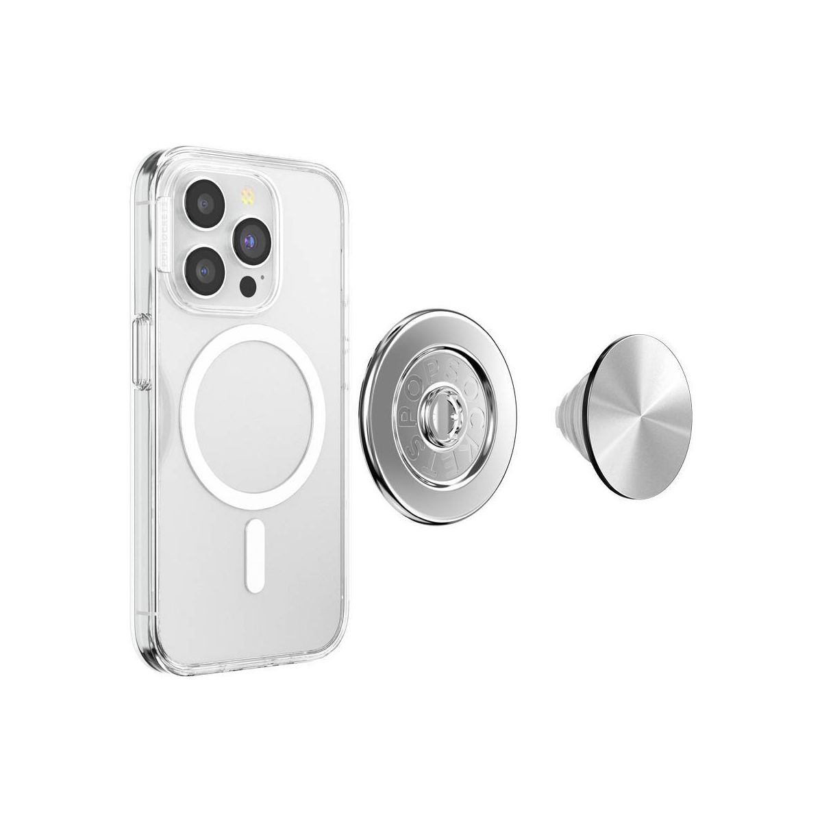 PopSockets Magnetic Phone Grip with MagSafe Magnetic Adapter Ring Included - Aluminum Radial Silver