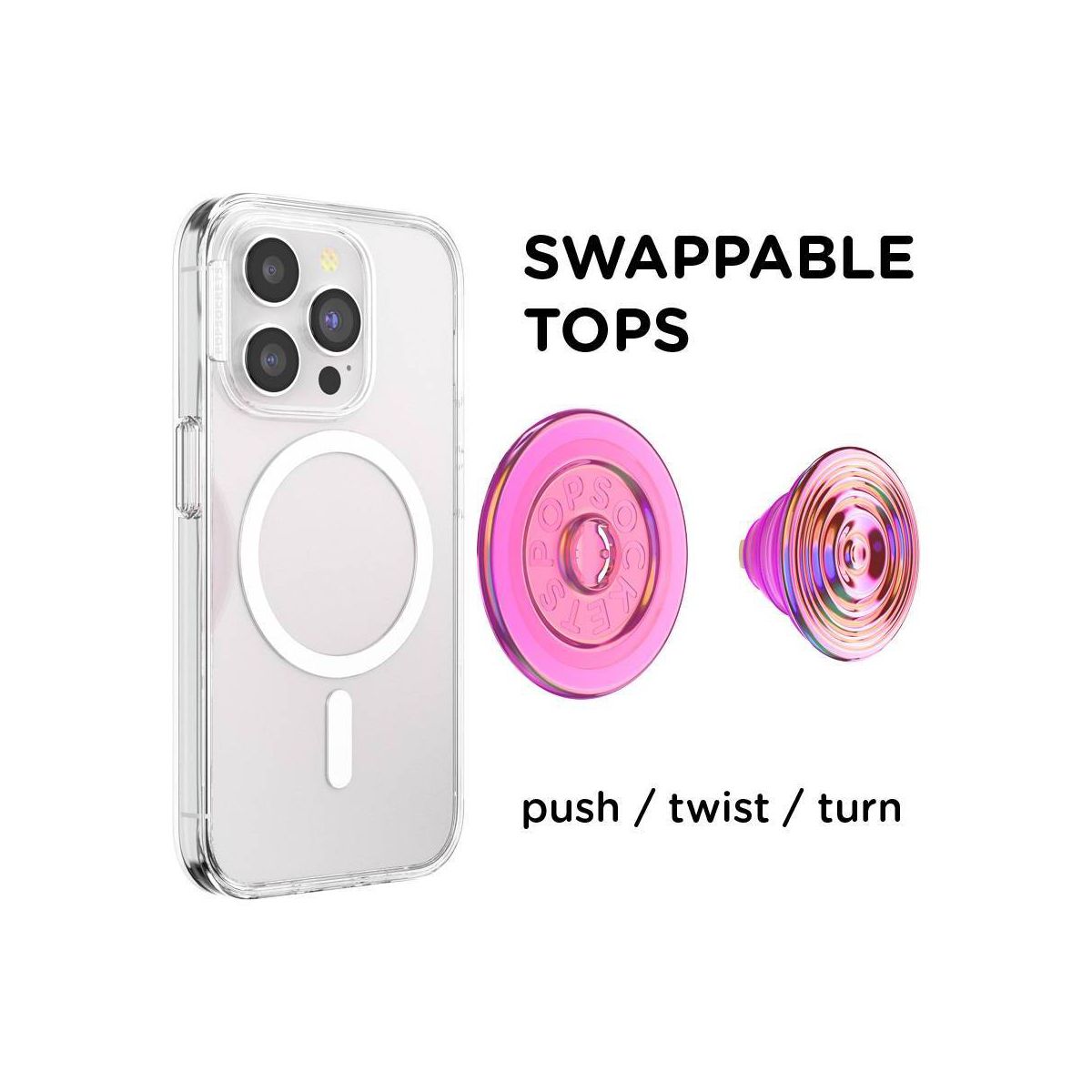 Our newly redesigned MagSafe PopGrip is a game changer, with the same reliable grip functionality. This product can be used with any MagSafe case made for iPhone 12's and newer models (including Pro, Plus and Pro Max). And now, each PopSocket MagSafe Grip includes an adapter ring to give any phone without MagSafe capabilities (i.e. Android/Pixel/Samsung/legacy iPhone case (or any non-MagSafe case) the ability to use magnetic phone accessories. Apply the adapter ring the outside/back of your case to enable magnetic grip technology. Works on MOST cell phone cases - NOT compatible with silicone, textured or anti-fingerprint coated cases. Our grip acts as a kickstand stand to watch movies or hold with confidence while texting or scrolling. Our grips collapse flat, sliding into your pockets or bag with ease. The magnetic PopSocket is compatible with our MagSafe ecosystem of grips, wallets, cases, mounts, and chargers.