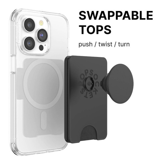 PopSockets Magnetic Phone Wallet with Grip and MagSafe, Magnetic Adapter Ring Included - Black