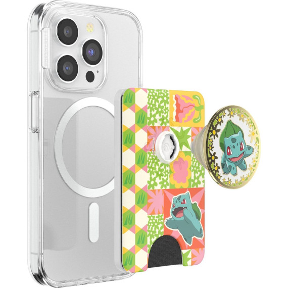 PopSockets Pokemon Magnetic Phone Wallet with Grip and MagSafe - Bulbasaur Patchwork