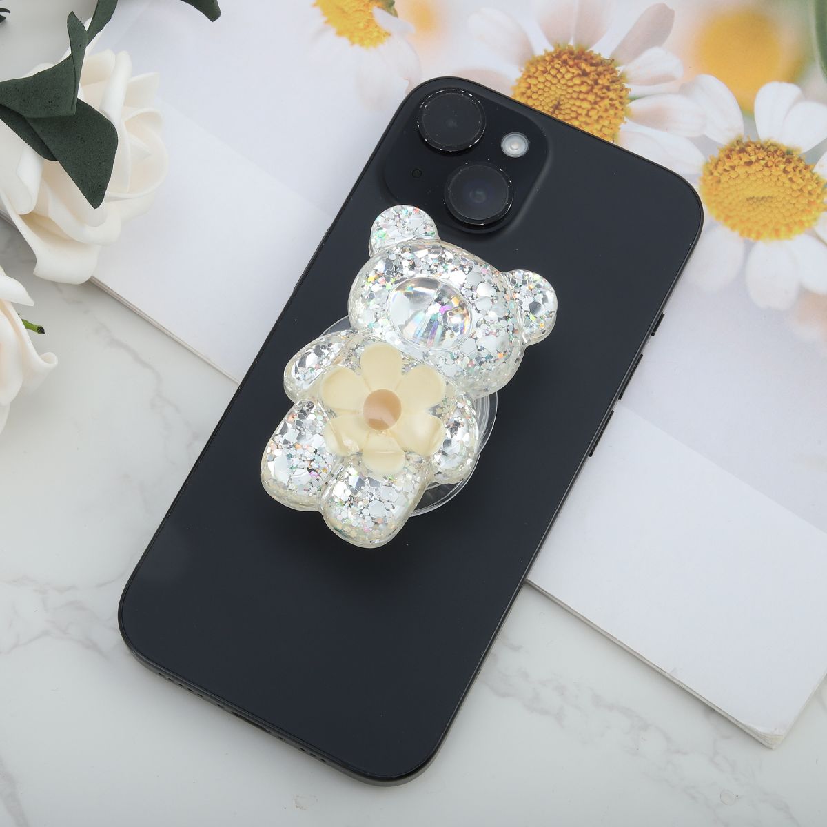 Unique Bargains Bears High-Shine Hexapetalous Flower Phone Grip Purple 1 Pc