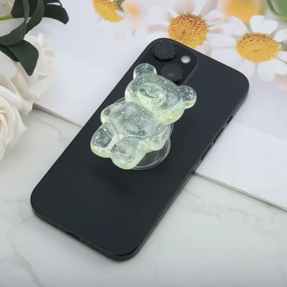 Unique Bargains Bears Silver Foil Phone Grip Transparent Red 1 Pc