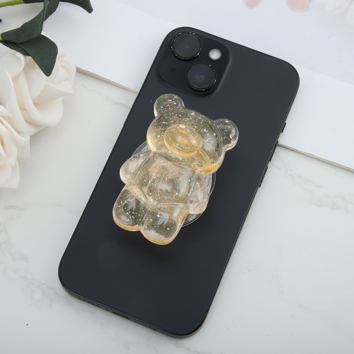Unique Bargains Bears Silver Foil Phone Grip Transparent Red 1 Pc