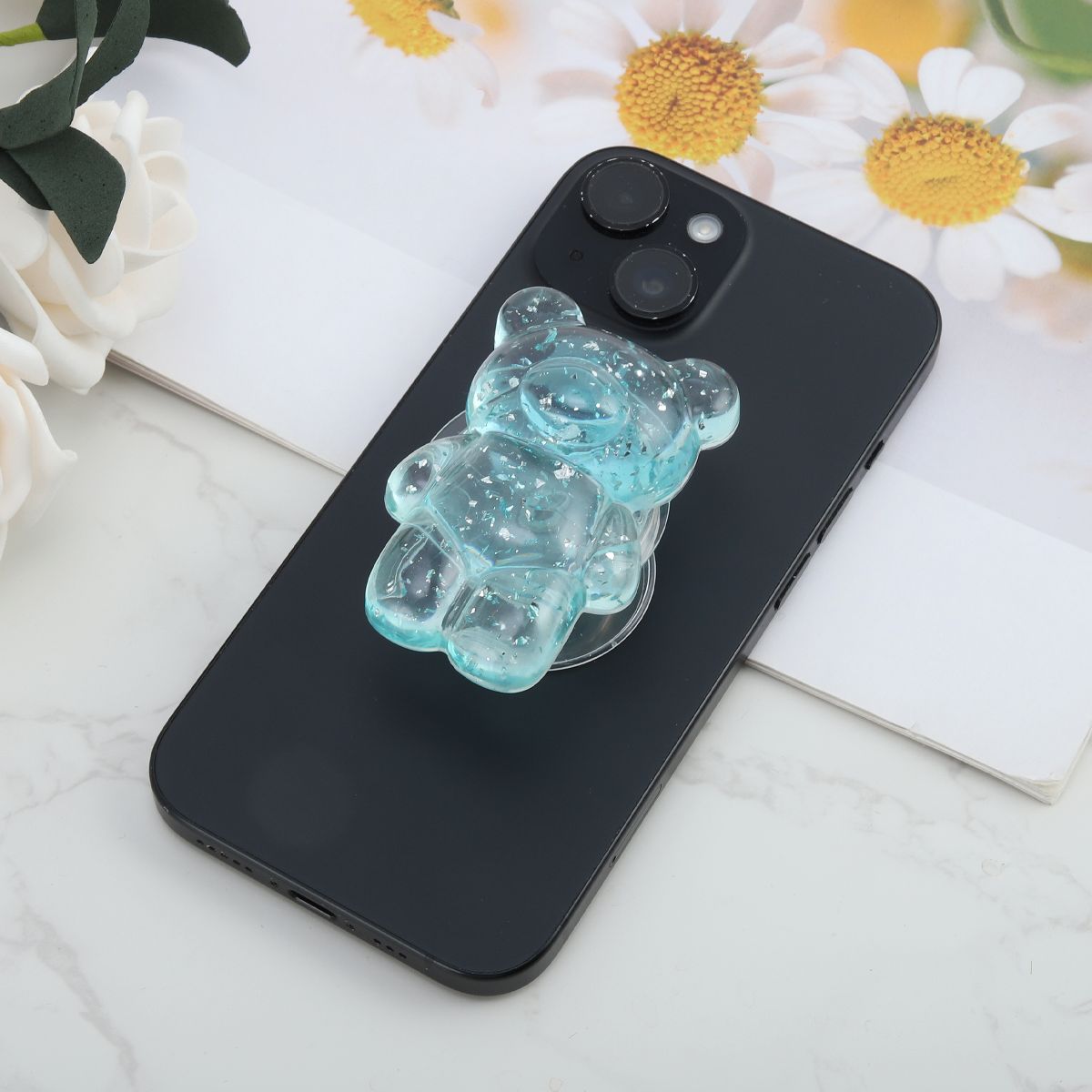 Unique Bargains Bears Silver Foil Phone Grip Transparent Red 1 Pc