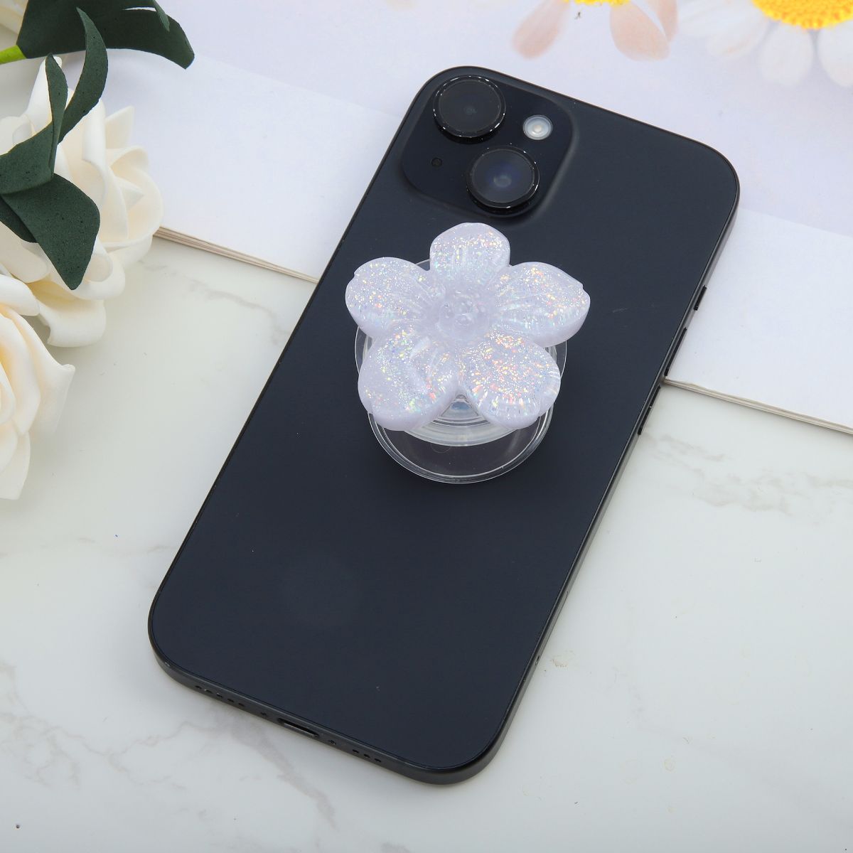 Unique Bargains Flower Morandi Sparkle Phone Grip Green 1 Pc