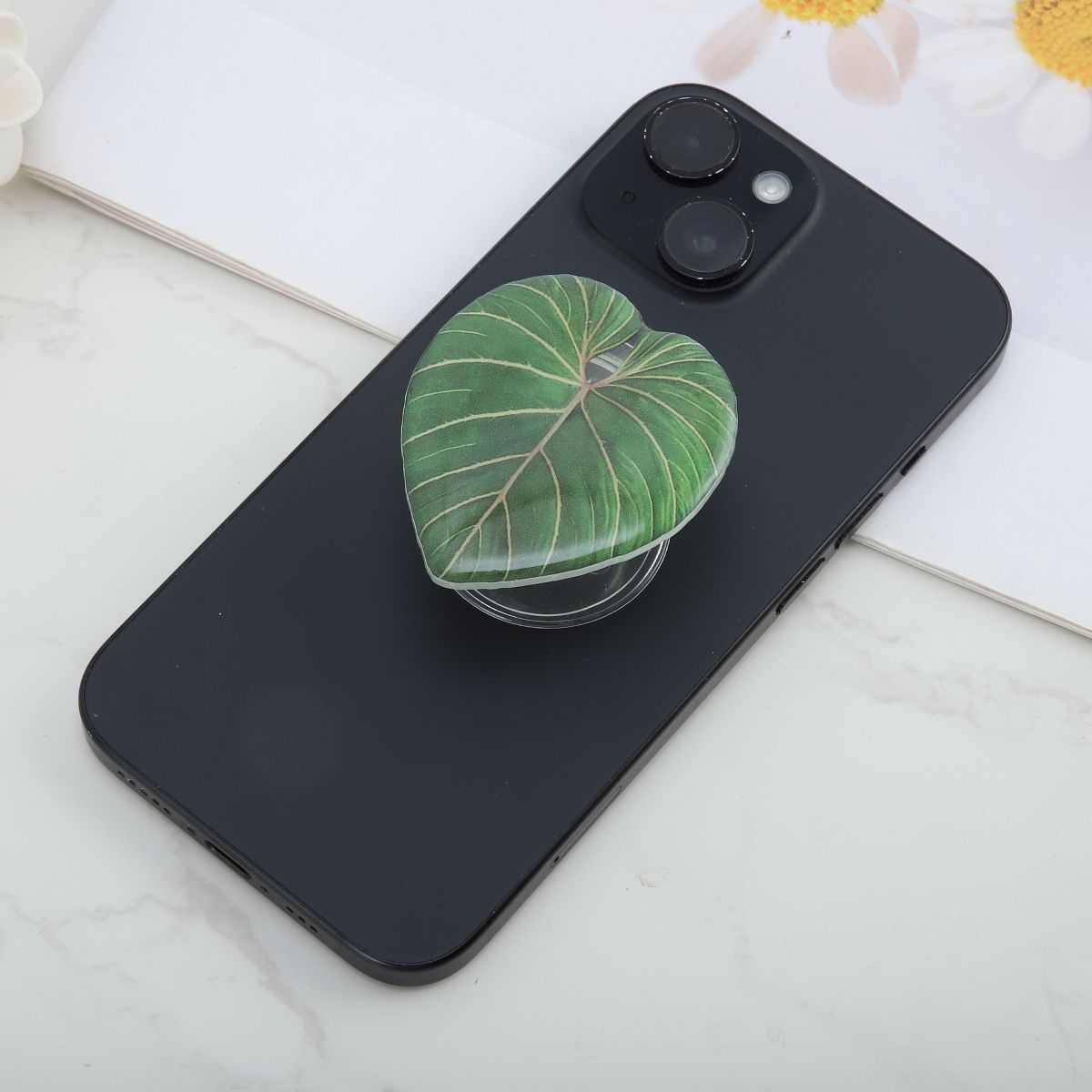 Unique Bargains Leaf #3 Phone Grip Transparent Dark Green 1 Pc