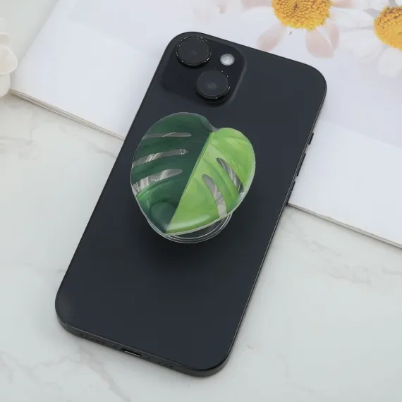 Unique Bargains Leaf #3 Phone Grip Transparent Dark Green 1 Pc