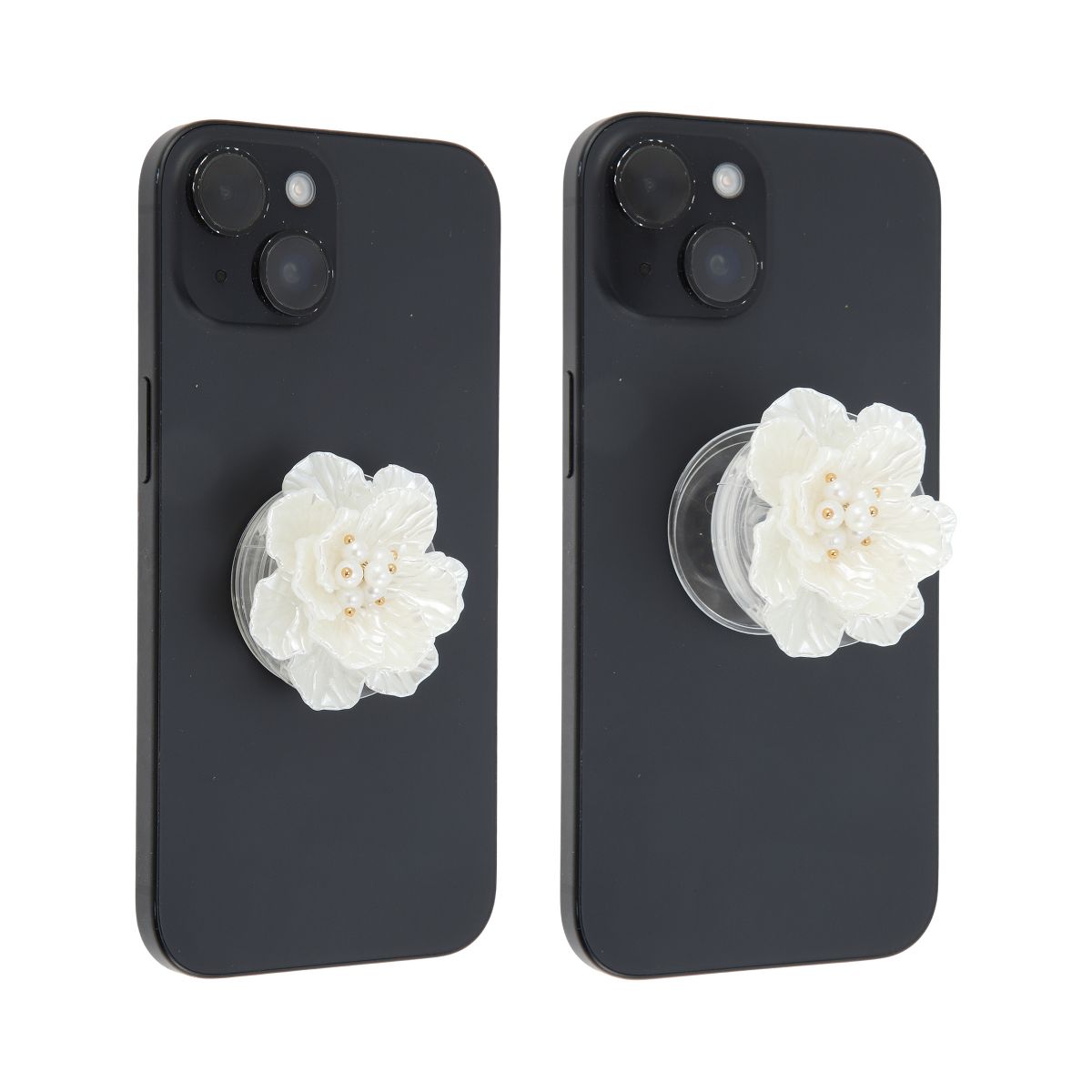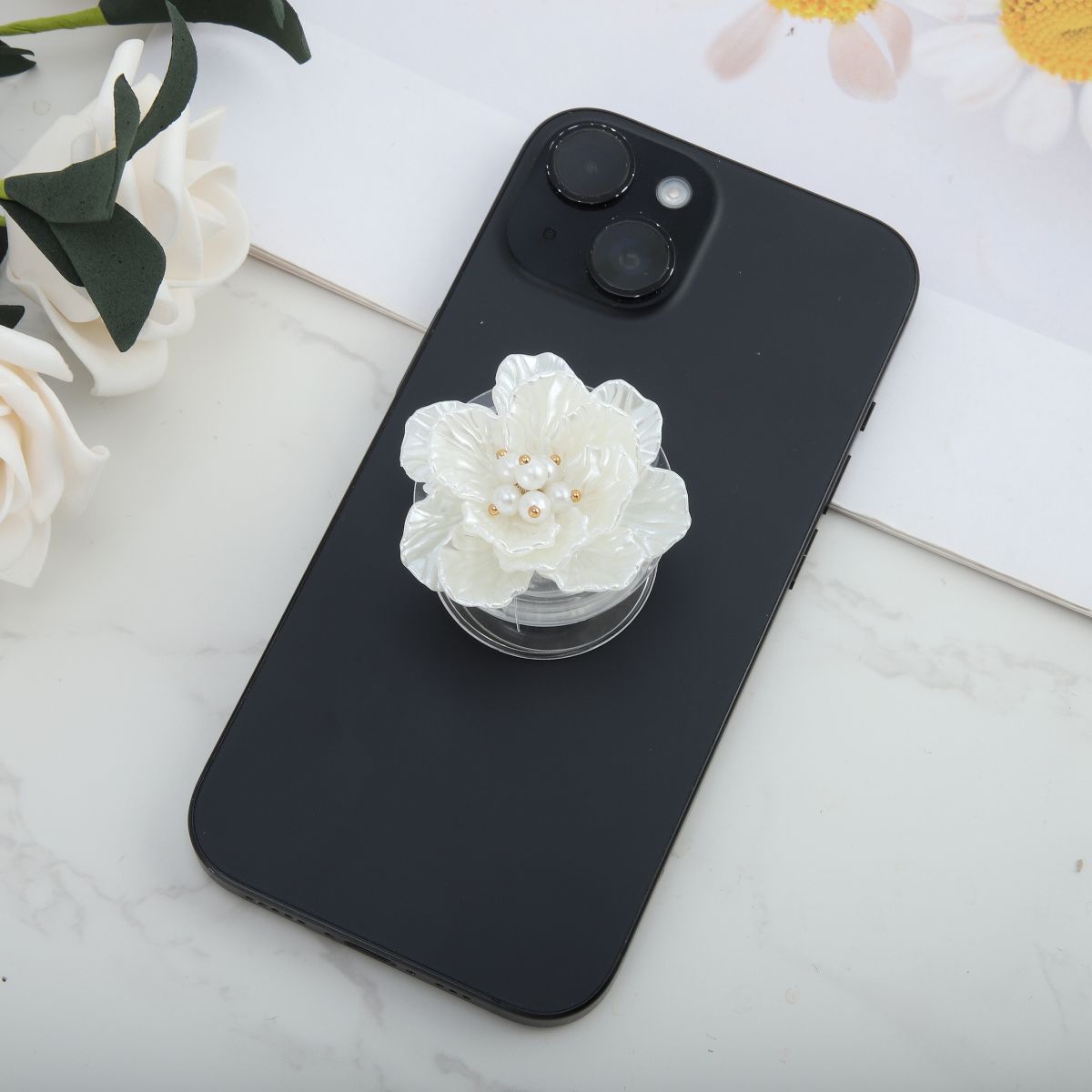 Unique Bargains Shell Flower Phone Grip Brown White 1 Pc