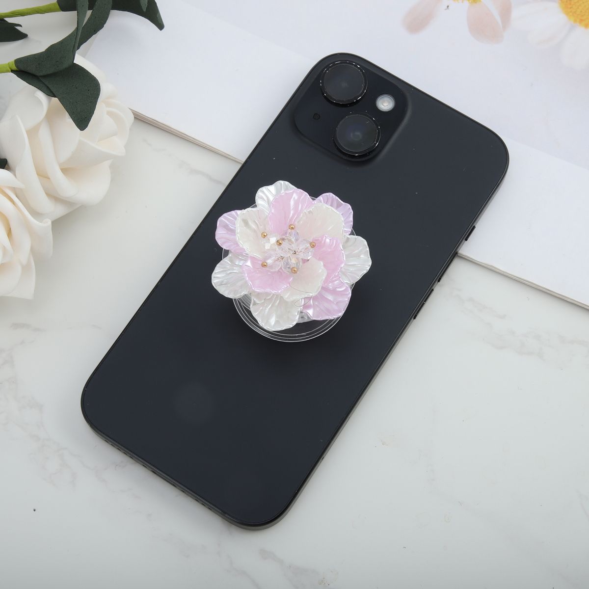 Unique Bargains Shell Flower Phone Grip Brown White 1 Pc