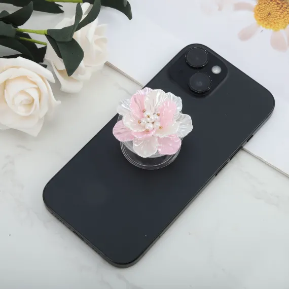 Unique Bargains Shell Flower Phone Grip Brown White 1 Pc