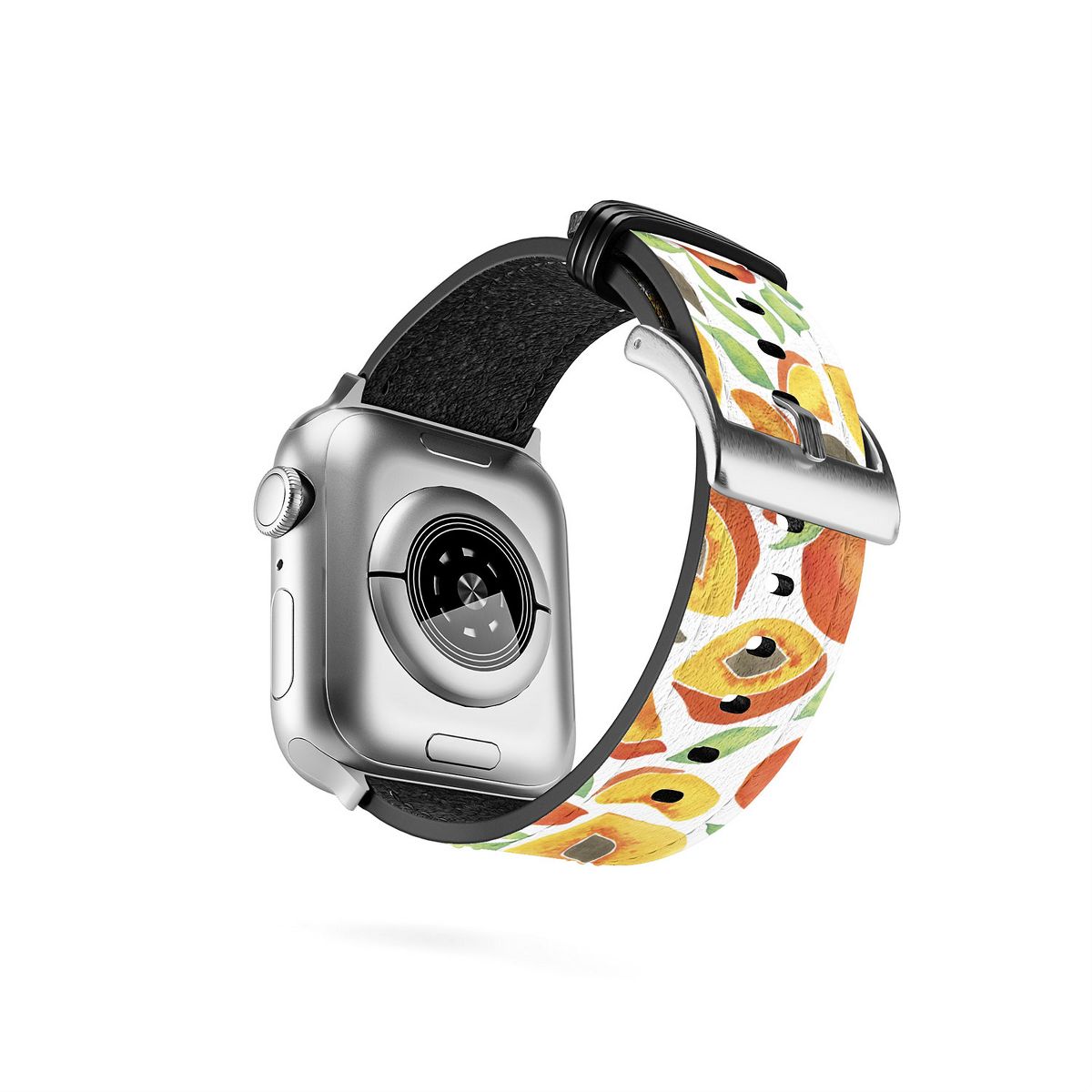 Cat Coquillette Peaches Green Leaves 42mm/44mm Silver Apple Watch Band - Society6