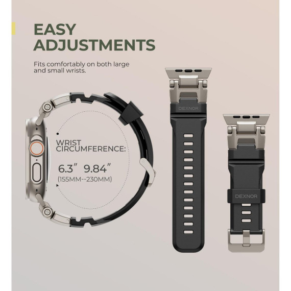 【Compatibility】Dexnor for Apple Watch band compatible with Apple Watch Ultra 2/Ultra 49mm, Apple Watch Series 10 46mm, Series 9/8/7 45mm, Series SE2/SE/6/5/4 44mm, Series 3/2/1 42mm. Fits for 6.1-9.06 inch (155–230mm) wrist size.