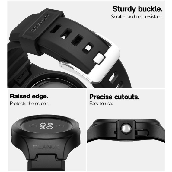 Dexnor Case for Google Pixel Watch Band, [Built in Adjustable Band & Raised Bezel] [41mm] Rugged Shockproof Sport Band, Black