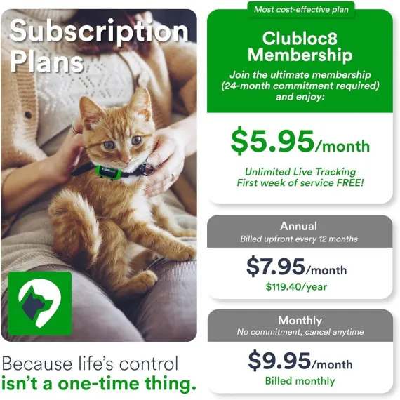 Keep your beloved pets safe and always within reach with the PETLOC8 GPS Pet Tracker. Lightweight and compact, this versatile tracker easily attaches to your pet's collar or harness, providing reliable, real-time tracking so you always know where they are whether they're exploring the yard, wandering the neighborhood, or adventuring on a family trip. Powered by advanced 4G LTE connectivity, it delivers precise location updates through the easy-to-use PETLOC8 app or web portal. To unlock all tracking features- including live location monitoring, detailed history, worldwide coverage, and customizable safe zones- an active subscription plan is required and must be purchased separately. With smart geofencing, you can set virtual boundaries and get instant alerts if your pet leaves the designated safe area, giving you extra peace of mind every day. The rechargeable battery provides dependable performance for days on a single charge, and the rugged, weather-resistant design holds up to your pet's adventures in any conditions. Whether for cats, dogs, or other curious companions, the PETLOC8 GPS Pet Tracker helps you stay connected and protect what matters most- your pet's safety and freedom.