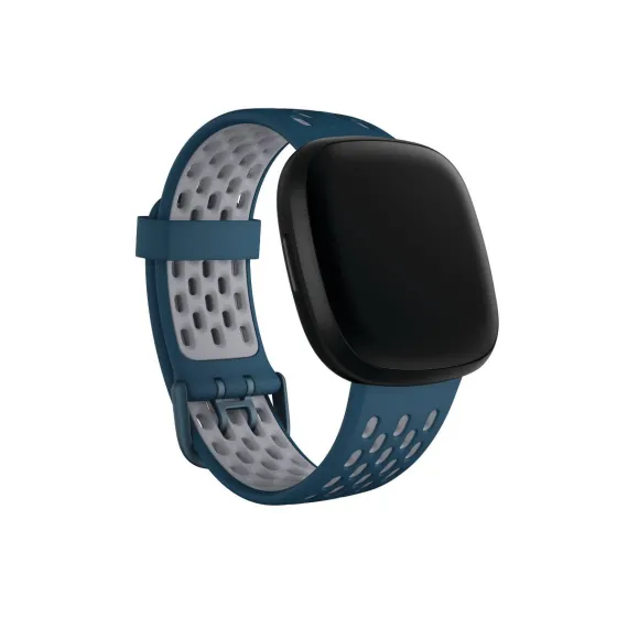 Go from work to workouts and everywhere in between in these soft, breathable sport accessory bands with unique two-tone color combinations inspired by nature. The large perforations enable extra breathability and comfort, and the aluminum double buckle keeps the band secure on your wrist. Designed to work with Fitbit Sense and Versa 3 smartwatches, sold separately.