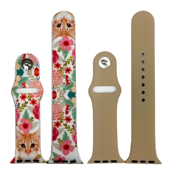 Flowers and Cats 2 Pack Printed and Solid Apple Watch Band 38MM