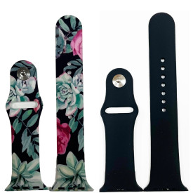 Flowers and Cats 2 Pack Printed and Solid Apple Watch Band 38MM